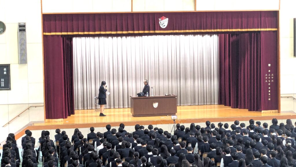 創立記念式典に先駆けて、西経一神父様をお招きし静修会が行われました。静修会は、自己を振り返り精神的な修養を積むための行事として行われるもので、西神父様には、三部構成で高校生及び教職員に対し貴重なご講話をいただきました。お忙しい中、長崎より駆けつけていただいた西神父様に心より感謝申し上げます。