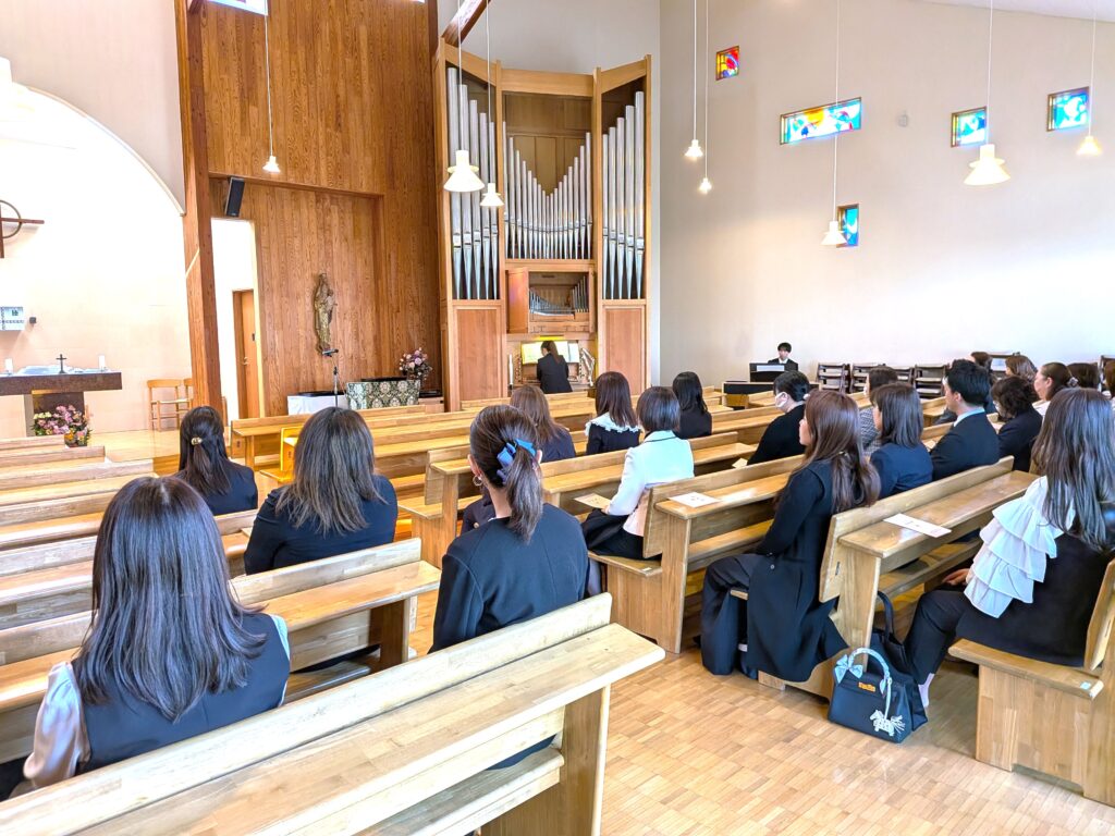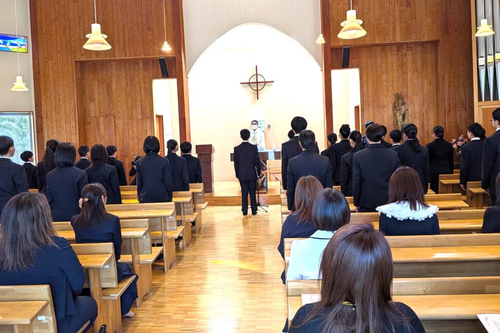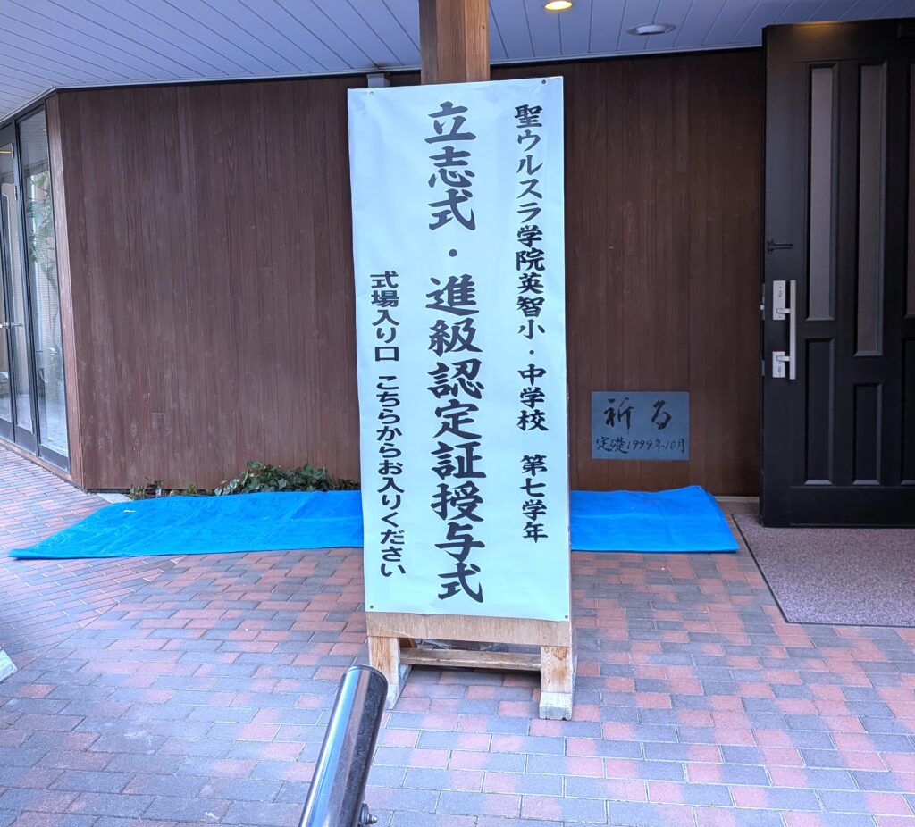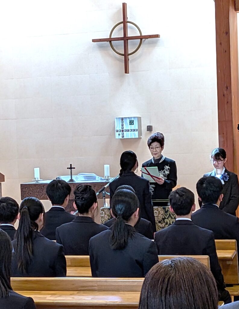 将来の目標や決意を立て、大人になる自覚を促す行事「立志式」及び進級認定証授与式が聖堂で行われました。セカンドステージからサードステージへ進級する62名の生徒たちは、保護者の方々と一緒に神父様から祈願・祝福を受けました。また、伊藤校長及びサードステージの先輩から、心温まるお祝いの言葉をいただきました。生徒たちのサードステージでの確かな歩みと人生の志・18歳成人をめざした節目となる行事となりました。保護者の方々には、年度末の忙しい時期に多数参加していただき心より感謝申し上げます。