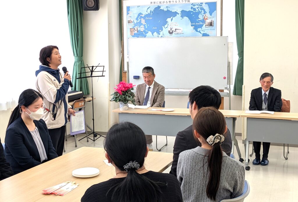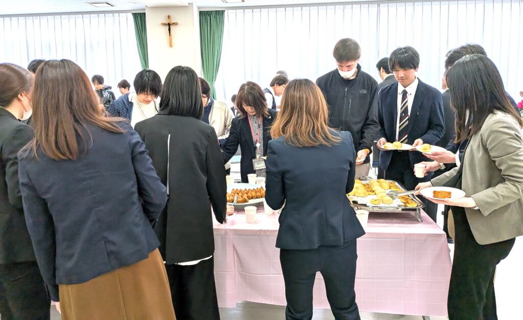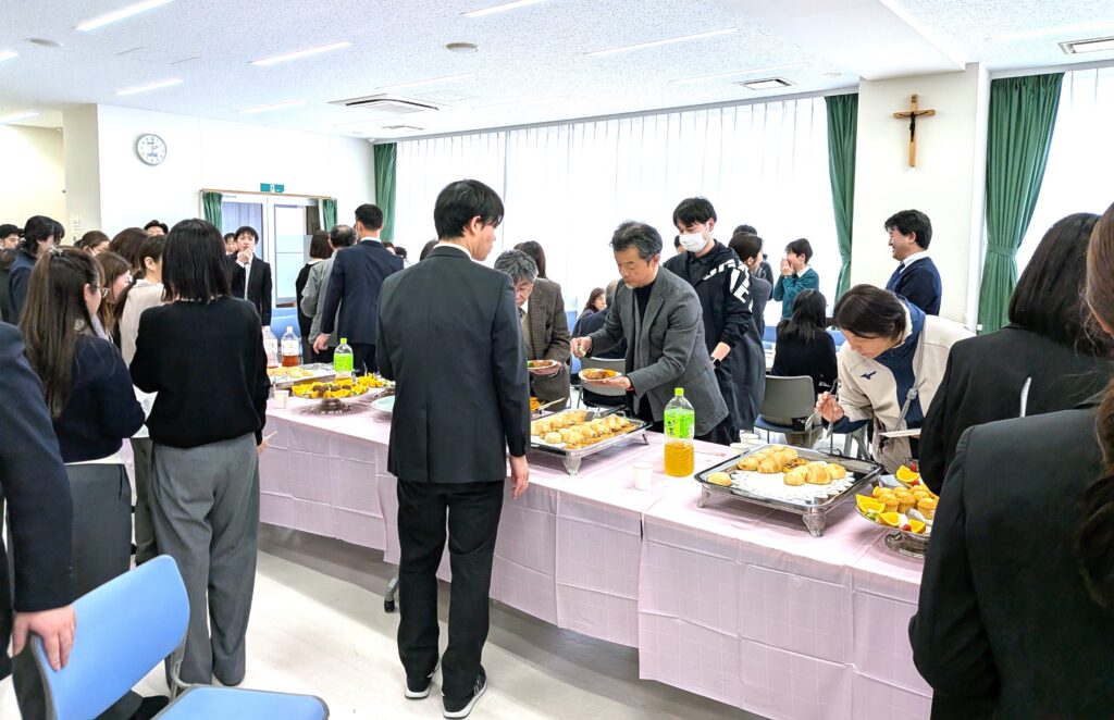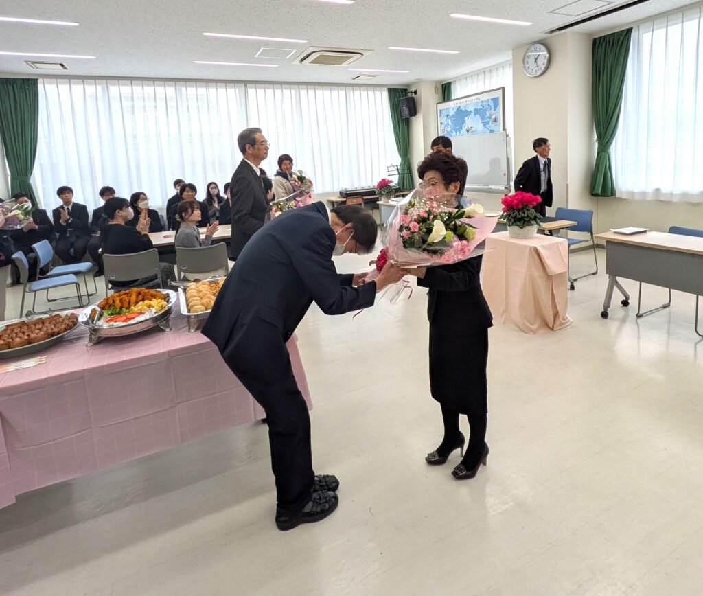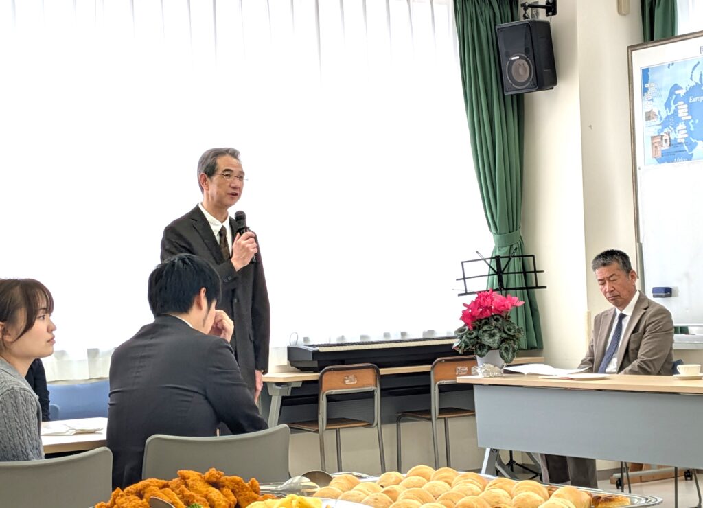 離任なさる先生方11名の先生方に対し、幼稚園、小・中、高等学校全教職員が一堂に会し、感謝の会を開催しました。教職員研修会で講師をしていただいた順天堂大学吉村雅文教授も参加していただきました。短い時間ではありましたが昼食会も兼ね楽しい一時を過ごしました。