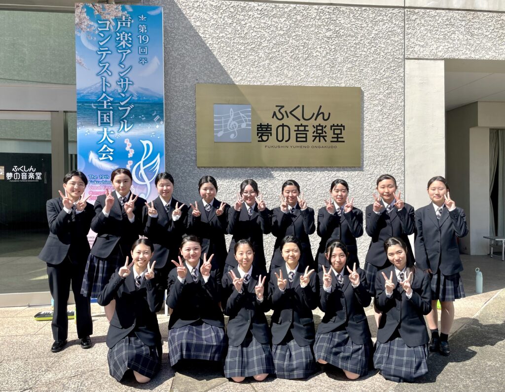 本学院合唱部は、今年度締め括りの大会となる、ふくしん夢の音楽堂(福島市音楽堂)で開催された第19回声楽アンサンブルコンテスト全国大会で銅賞を受賞しました。今年度の合唱部は、NHK学校音楽・全日本合唱コンクール東北大会での上位入賞をはじめ、東北・全国大会で活躍できる演奏力を身につけることができました。これも、保護者の皆様をはじめ地域の方々、卒業生などたくさんの方々の御支援・御声援のおかげです。合唱部一同心より感謝申し上げます。来年度更に上をめざし努力していきます。