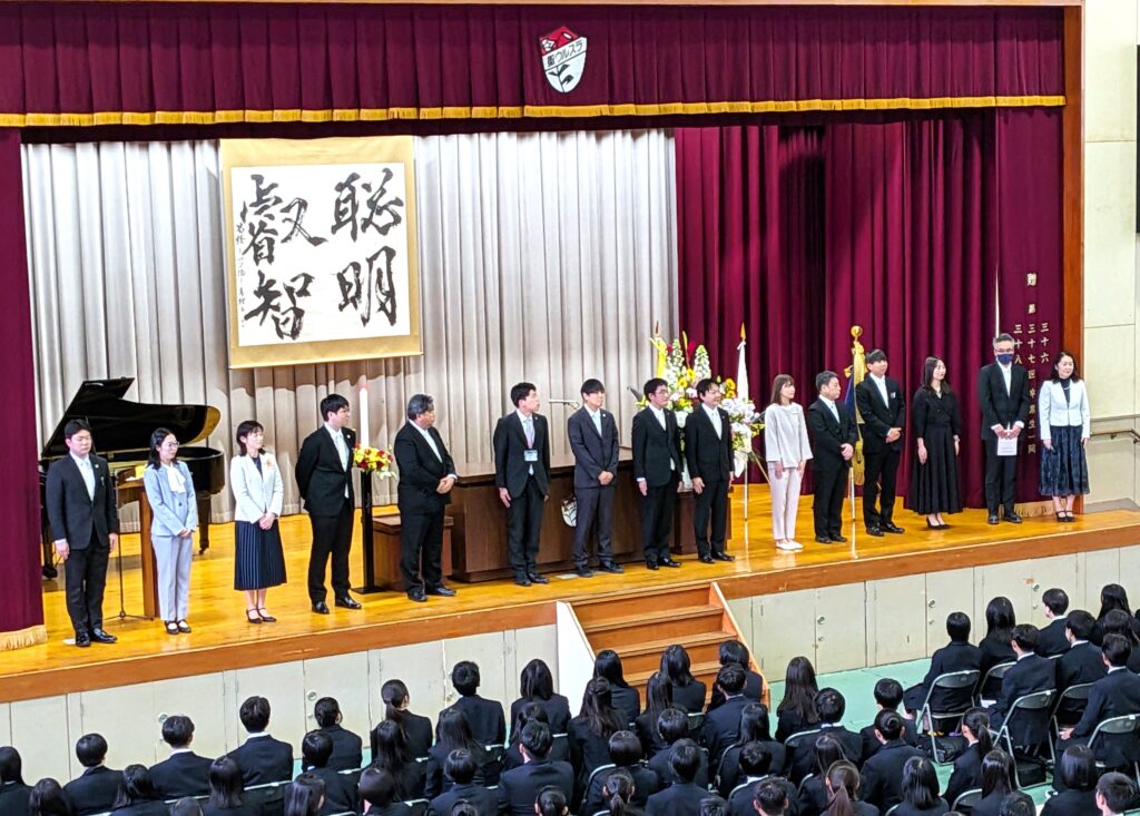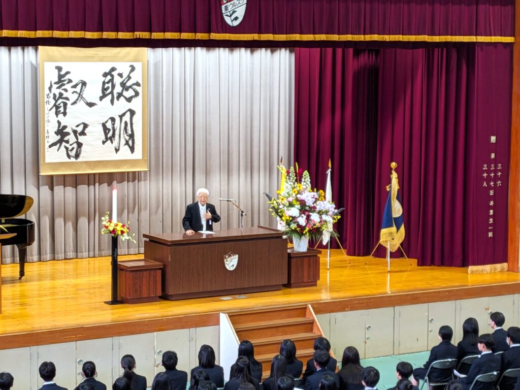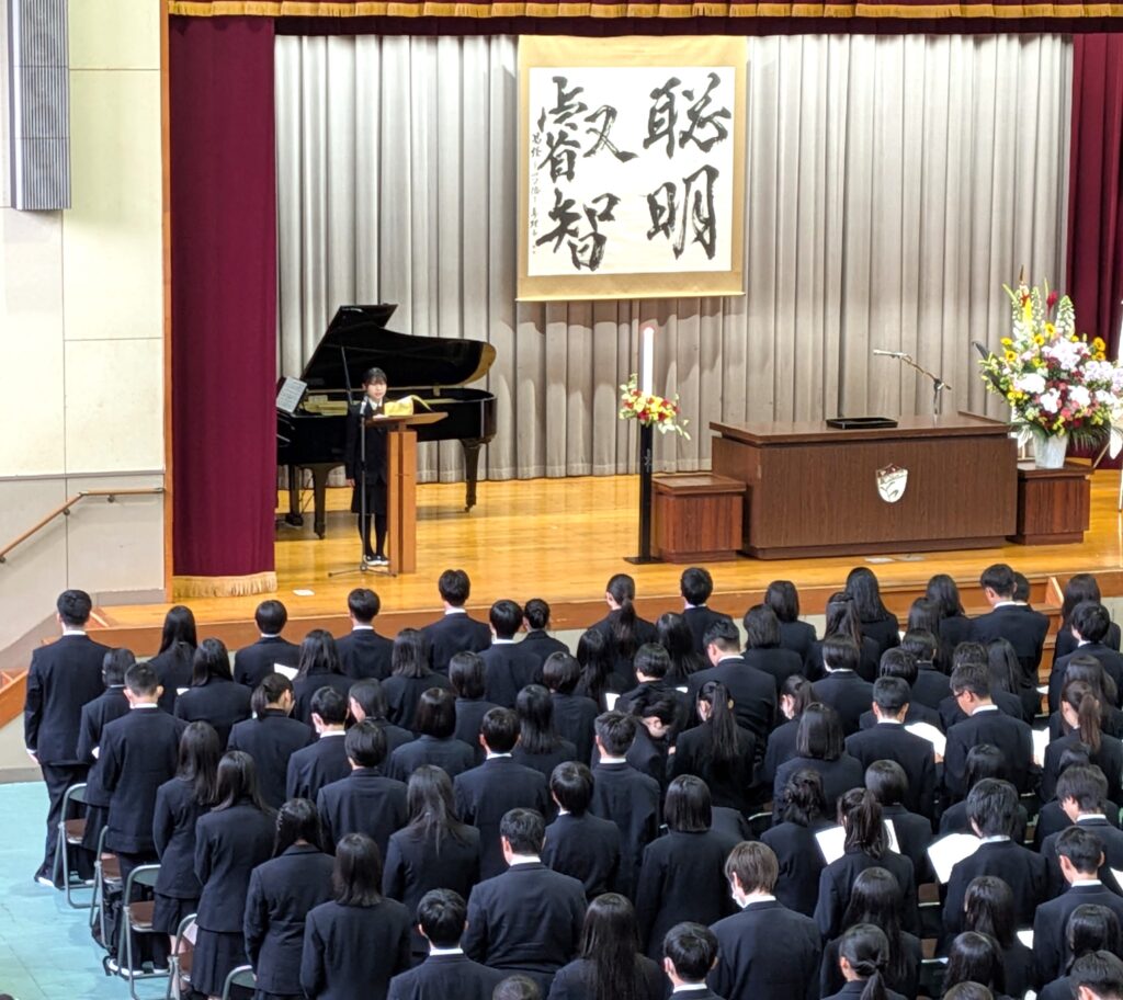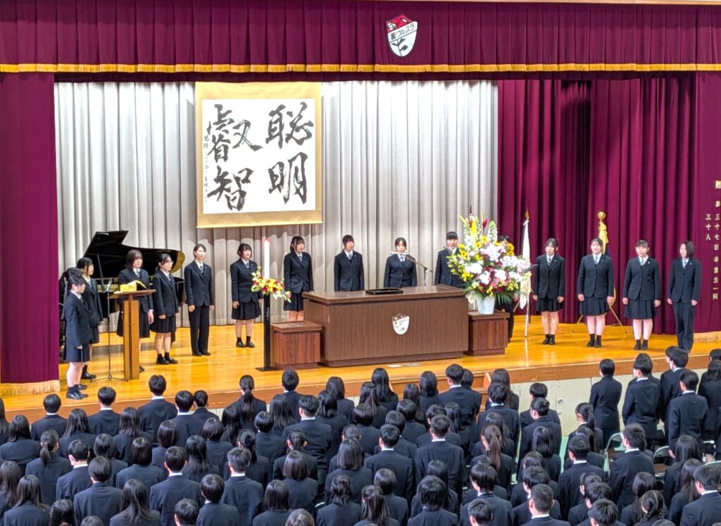 本学院講堂にて令和8年度聖ウルスラ学院英智高等学校入学式が行われました。少々肌寒さを感じる天候となりましたが、たくさんの保護者の方々にご参列いただき入学式を行うことができました。各コース生徒代表誓いの言葉では、各コースにふさわしい内容を盛り込んだ素晴らしい発表でした。激動の時代を力強く生き抜いていかなければならない新入生に対し、梶田理事長、坂田校長から今後の高校生活に向けたメッセージが送られました。