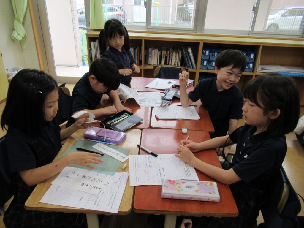1・2年生による縦割り班で、チームワークを合言葉に、学習に臨みました。1・2年生の縦割りなので、2年生がリーダーとなって班をリードします!