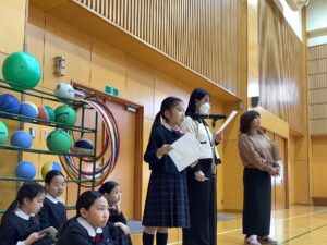 司会進行や歓迎の言葉は、4年生の代表委員が担当します。