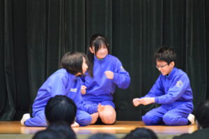 スキットの部は3から4人でチームを組み、立ち位置なども話し合いながら劇をします。息の合った演技に見入ってしまいました。