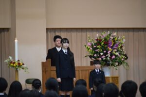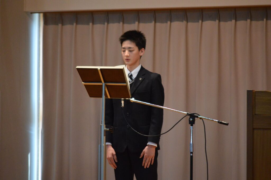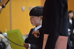 新入生を代表しての誓いの言葉も、1年生、7年生がそれぞれお話しします。