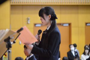 8年生の代表生徒が、決意の作文を発表しました。