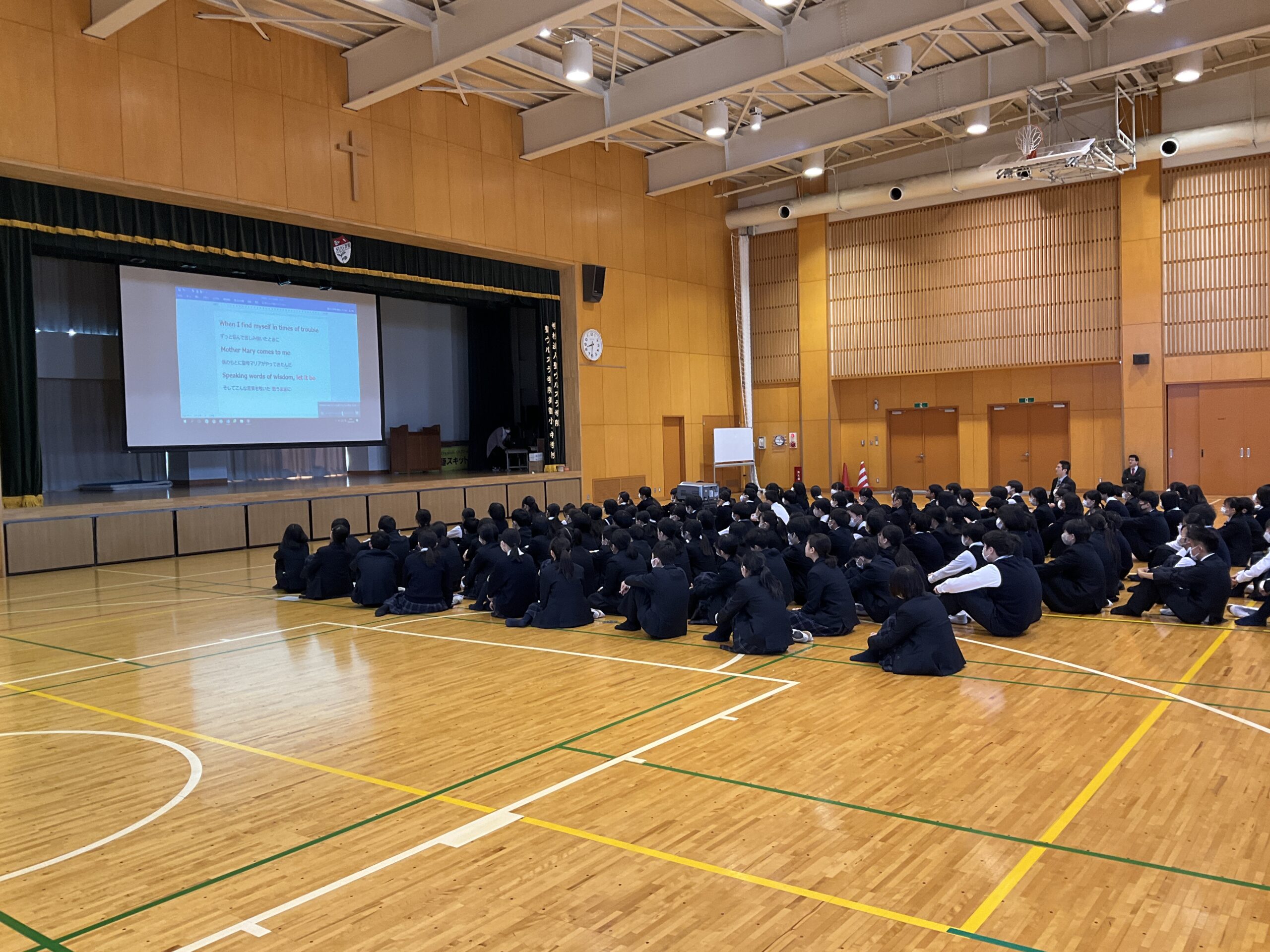 3rdステージ朝礼では、各コースの8,9年生が講堂に集まり、その時々の話題について教員の話を聞いたり、表彰を行ったり、互いに話し合って考えたり、様々なことを行います。